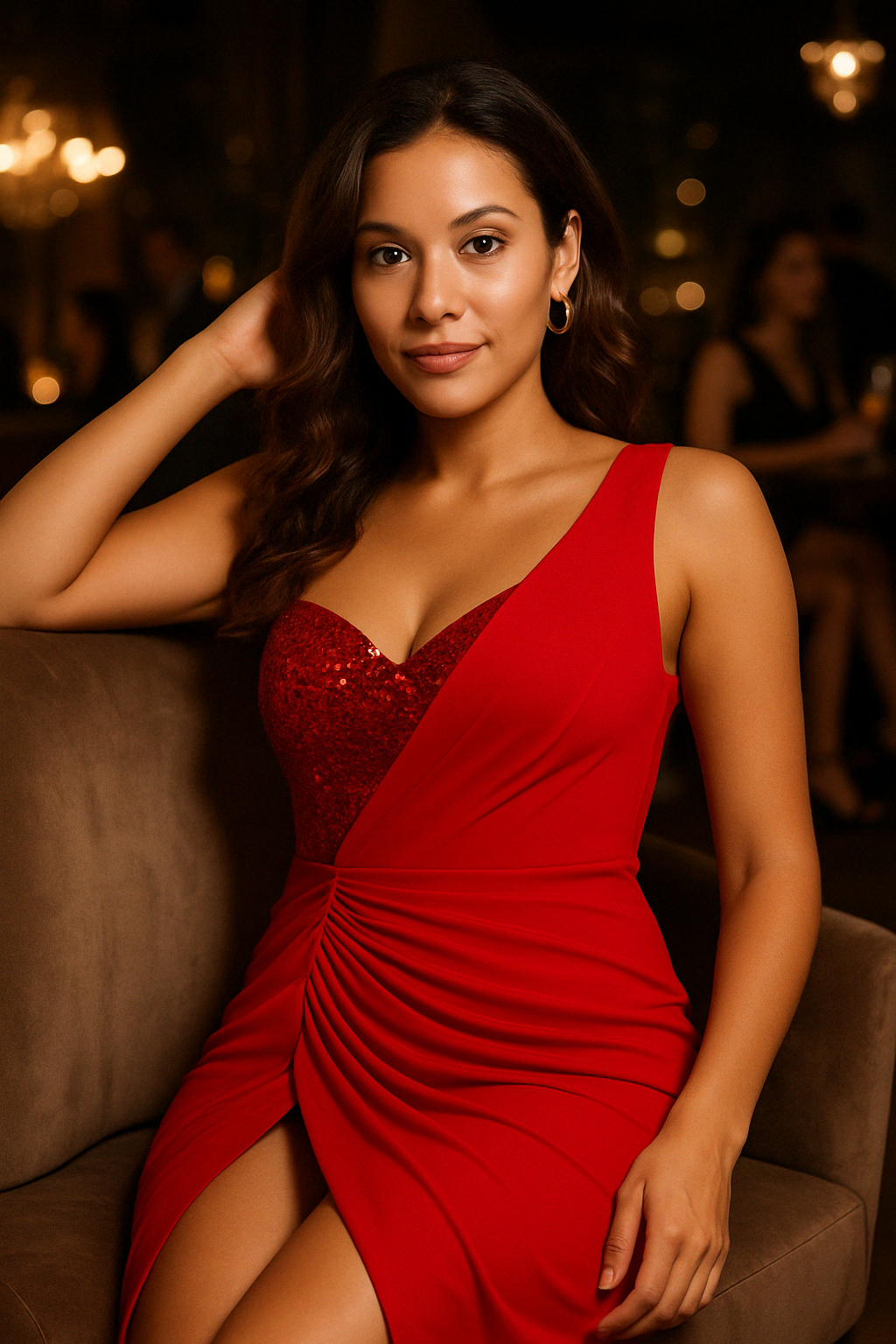 De VALERIA jurk is een ware eyecatcher met haar asymmetrisch ontwerp, glinsterende details en vrouwelijke plooival. Ideaal voor gelegenheden waarbij jij het stralende middelpunt wilt zijn.
